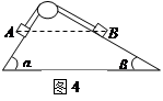 4、选择题 如图4所示,A、B两物体用一根跨过定滑轮的细绳相连,置于固定斜面体的两个斜面上的相同高度,处于静止状态,两斜面的倾角分别为37°和53°,若不计摩擦,剪断细绳后,下列说法中正确的是(以地面为参考面)(? )