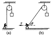 1、计算题 某人通过定滑轮将一重物提升。第一次,此人竖直向下拉绳[如图(a)所示],使物体匀速上升高度h,该过程人对物体做功为W1。第二次,此人以速度v匀速向左拉着绳运动[如图(b)所示],使物体上升相同的高度,此时绳子与水平面夹角为θ,已知重力加速度为g。求第二次人对物体做的功。