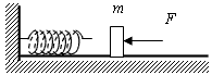 4、选择题 在光滑水平面上,物体m受一水平恒力F的作用向前运动,如图所示,它的正前方固定一根劲度系数足够大的弹簧,当物体接触弹簧后,下列说法中正确的是