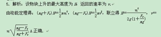 2、选择题  以初速度v0竖直向上抛出一质量为m的小物块.假定物块所受的空气阻力Ff大小不变.已知重力加速度为g,则物块上升的最大高度和返回到原抛出点的速率分别为