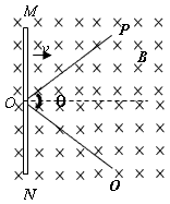 5、填空题 如图所示,两根完全相同的光滑金属导轨OP、OQ固定在水平桌面上,导轨间的夹角为θ=74°,导轨单位长度的电阻为r0=0.10Ω/m。导轨所在空间有垂直于桌面向下的匀强磁场,且磁场随时间变化,磁场的磁感应强度B与时间t的关系为B=