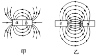 D.图乙是两异名磁极的磁感线分布示意图,c端是S极,d端是N极