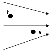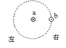 5、填空题 如图所示为两根互相平行的通电直导线a,b的横截面图,a,b中的电流方向已在图中标出,在图中作出导线a中的电流产生的磁场的磁感线环绕方向及导线b所受的磁场力的方向。