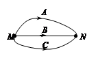 5、选择题 如图所示是三个质点A、B、C的运动轨迹,三个质点同时从N点出发,同时到达M点。下列说法正确的是