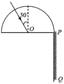 (2)如图所示,半圆形玻璃砖的半径为R,光屏PQ置于直径的右端并与直径垂直,一复色光与竖直方向成α=30°角射入玻璃砖的圆心O,由于复色光中含有两种单色光,故在光屏上出现了两个光斑,玻璃对两种单色光的折射率分别为n1=