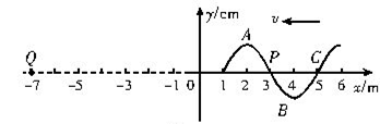 4、选择题  一列简谐横波,在t=0时刻的波形如图所示,且自右向左传播,已知从零时刻开始在t1=0.7s时P点第二次出现波峰,Q点的坐标是(-7m,0),则以下判断正确(?)