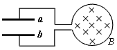 2、选择题 如图所示,电容器C两端接有单匝圆形线圈,线圈内存在垂直于线圈平面向里的匀强磁场。已知圆的半径r=5cm,电容C=20μF,当磁场的磁感应强度以4×10-2T/s的变化率均匀增加时,则