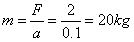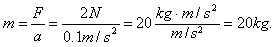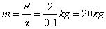 4、选择题 一物体在2N的外力作用下,产生了10 cm/s2的加速度,求该物体的质量。下面有几种不同的求法,其中单位运用正确、简洁而又规范的是