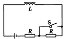 4、选择题 如图所示,两个电阻均为R,电感线圈L的电阻及电池内阻均可忽略不计,S原来断开,电路中电流