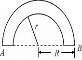 4、选择题 如图所示,空气中有一横截面为半圆环的均匀透明柱体,其内圆半径为r,外圆半径为R,R=?。现有一束单色光垂直于水平端面A射入透明柱体,只经过两次全反射就垂直于水平端面B射出。设透明柱体的折射率为n,光在透明柱体内传播的时间为t,若真空中的光速为c,则(? )