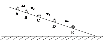 5、实验题 一个小球沿斜面向下运动,用每隔T=0.1s曝光一次的频闪相机进行拍摄,不同时刻小球的位置如图,实验数据见下表。