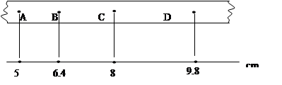 4、实验题 在测定匀变速直线运动的实验中,打点计时器打出一纸条, A、B、C、D为四个计数点,且两相邻计数点间还有四个点没有画出,所用交流电频率为50赫兹,纸带上各点对应尺上的刻度如图所示,则VB= ?m/s .a= ?m/s2.