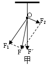 4、实验题  如图所示是甲、乙两位同学在“探究力的平行四边形定则”的实验中所得到的实验结果,若用F表示F1、F2的合力,用F?表示F1和F2的等效力,则可以判断?(选填“甲”或“乙”)同学的实验结果是符合事实的。