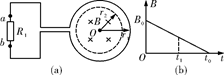 4、选择题 如图所示,一个电阻值为R、匝数为n的圆形金属线圈与阻值为2R的电阻R1连接成闭合回路.线圈的半径为r1.在线圈中半径为r2的圆形区域内存在垂直于线圈平面向里的匀强磁场,磁感应强度B随时间t变化的关系图线如图(b)所示.图线与横、纵轴的交点坐标分别为t0和B0.导线的电阻不计.在0至t1时间内,下列说法正确的是( )