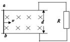 1、选择题 如图导体ab在宽度d=0.2m的金属导轨上运动的速度随时间变化关系