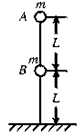 4、选择题 如图所示,长为2L的轻杆上端及其正中央固定两个质量均为m的小球,杆竖直立在光滑的水平面上,杆原来静止,现让其自由倒下,设杆在倒下过程中着地端始终不离开地面,则A着地时的速度为