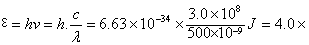 参考答案:解:(1)对于λ=500 nm的光子能量为