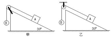 B.当A沿斜面加速下滑时,地面对甲乙的摩擦力方向均向左