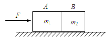 1、选择题 如图所示,两物体A和B,质量分别为m1和m2,相互紧靠放在水平面上.对物体A施以水平的推力F,则物体A对B的作用力等于 ( )