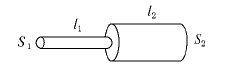 4、填空题 如图所示,两段铜棒接在电路中,已知l1=l2,2S1=S2,则自由电子在两段导体棒中定向移动的平均速率之比
