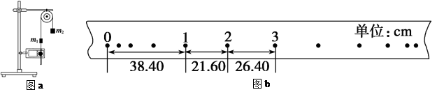 1、实验题 用如图所示的实验装置验证物块m1、m2组成的系统机械能守恒。m2从高处由静止开始下落,m1上拖着的纸带打出一系列的点,对纸带上的点迹进行测量,即可验证机械能守恒定律。如图b给出的是实验中获取的一条纸带:0是打下的第一个点,每相邻两计数点间还有4个点(图中未标出),计数点间的距离如图所示.已知m1=50 g、m2=150 g,则(结果均保留两位有效数字)