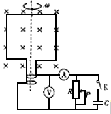 5¡¢Ñ¡ÔñÌâ   ;ÈçͼËùʾ£¬µç×èΪrµÄ¾ØÐÎÏßȦÔÚÔÈÇ¿´Å³¡ÖÐÈÆ´¹Ö±Óڴų¡µÄÖáÒÔ½ÇËٶȦØÔÈËÙת¶¯¡£t=0ʱ¿ÌÏßÈ¦Æ½ÃæÓë´Å³¡´¹Ö±£¬¸÷µç±í¾ùΪÀíÏë½»Á÷µç±í£¬Ôò