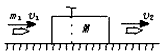 1、计算题  质量为M=2 kg的木板若固定在光滑的水平地面上,质量为m=0.04 kg的子弹以速度v1=500 m/s射入,射出时子弹速度v2=300 m/s,如图所示,今将钉子拔掉,子弹穿出木块后的速度多大?(设前后两次子弹和木块的作用力相同)