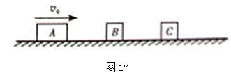 5、计算题 如图17,光滑水平轨道上有三个木块A、B、C,质量分别为