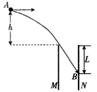 1、计算题 如图所示,两平行金属板M、N竖直放置,两板间的电势差U=1.5×103 V,现将一质量m=1.0×10-2 kg、电荷量q=4.0×10-5 C 的带电小球从两板上方的A点以v0=4 m/s的初速度水平抛出(A点与两板上端的高度差h=20 cm),之后小球恰好从靠近M板上端处进入两板间,并沿直线运动到N板上的B点,不计空气阻力,取g=10 m/s2。求: