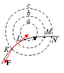 根据题意,a电势高于b,b电势高于c,则电场线方向从内向外。根据曲线运动的条件可以判断,从K到L电场力做负功,电势能增加;从M到N电场力做正功。从L到M电场力先做负功后做正功。所以答案为C
