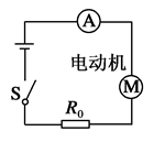 1、选择题 如图所示电路中,电源电动势为12V,电源内阻为1.0Ω,电路中的电阻R0为1.5Ω,小型直流电动机M的内阻为0.5Ω,闭合开关S后,电动机转动,电流表的示数为2.0A,则以下判断中正确的是(?)