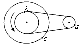 4、填空题  如图所示装置中,三个轮的半径分别为r、2r、4r,则图中a、b、c各点的线速度之比va∶vb∶vc=____________;角速度之比ωa∶ωb∶ωc=____________。