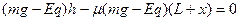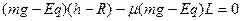 5、计算题 某兴趣小组做了一个电场中的过山车小实验。如图所示的绝缘轨道ABCDF处在竖直向下的匀强电场中,其中倾斜轨道AB和竖直的圆形轨道光滑,水平轨道BCF粗糙,C为圆形轨道的最低点,BC段长为L。现有一个质量为m、带电量为-q的小球,从距水平面BC高h=5.4L处的P点由静止下滑,小球恰能通过竖直圆形轨道的最高点D而作圆周运动。已知小球与水平轨道BCF间的动摩擦因素为μ=0.4,空间所加的电场强度为