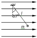5、计算题 一根长为l的丝线吊着一质量为m的带电量为q的小球,静止在水平向右的匀强电场中,如图所示,丝线与竖直方向成37°角,现突然将该电场方向变为向下且大小不变,不考虑因电场的改变而带来的其他影响,(重力加速度为g),求: