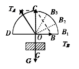 1、选择题 如图半圆形支架BAD,两细绳OA和OB结于圆心O,下悬重为G的物体,使OA绳固定不动,将OB绳的B端沿半圆支架从水平位置缓慢移至竖直位置C的过程中,分析OA绳和OB绳所受的力大小如何变化(? )