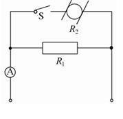 4、选择题  (2011·镇江模拟)如图所示,电阻R1="20" Ω,电动机绕线电阻R2="10" Ω,当电键S断开时,电流表的示数是I1="0.5" A;当电键S合上后,电动机转动起来,电路两端的电压不变,此时电流表的示数I和电路消耗的电功率P应满足(? )