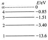 5、选择题 氢原子的部分能级如图所示。已知可见光的光子能量在1.62eV到3.11eV之间。由此可推知, 氢原子(?)