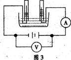 4、计算题 如图3所示,在电解水的实验中,电压表的示数为U=3.OV,电流表的示数为I=10mA。已知电解过程中电解池的电阻R=130Ω,求电解池每秒钟有多少电能转化为化学能来使水电解?