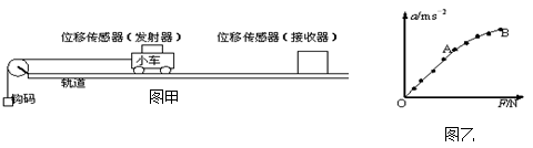 4、实验题 (9分)如图甲为“用DIS(位移传感器、数据采集器、计算机)“研究加速度和力的关系”的实验装置。