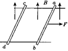 1、选择题 如图所示,相距为L的两条足够长的光滑平行轨道上,平行放置两根质量和电阻都相同的滑杆ab和cd,组成矩形闭合回路.轨道电阻不计,匀强磁场B垂直穿过整个轨道平面.开始时ab和cd均处于静止状态,现用一个平行轨道的恒力F向右拉ab杆,则下列说法正确的是(?)?