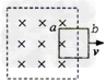 5、选择题 粗细均习的电阻丝围成的正方形线框置于有界匀强磁场中,磁场方向垂直于线框平面,其边界与正方形线框的边平行。现使线框以同样大小的速度沿四个不同方向平移出磁场,如图所示,则在移出过程中线框的一边a、b两点间电势差绝对值最大的是