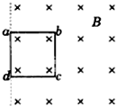 4、简答题 在磁感强度B=0.5T的匀强磁场中,有一个正方形金属线圈abcd,边长l=0.2m,线圈的ad边跟磁场的左侧边界重合,如图所示,线圈的电阻R=0.4Ω,用外力使线圈从磁场中运动出来:一次是用力使线圈从左侧边界匀速平动移出磁场;另一次是用力使线圈以ad边为轴,匀速转动出磁场,两次所用时间都是0.1s.试分析计算两次外力对线圈做功之差.(π2=10)
