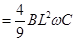 C、电容器板间电压等于ac间的电势差,则电容器所带电量为 Q="CUac=4/9" BL2ω,故C正确。