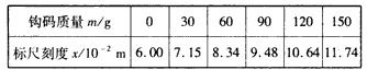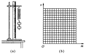 (1)根据所测数据,在图(b)所示的坐标纸上画出弹簧指针所指标尺刻度x与钩码质量m的关系曲线。