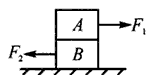 5、填空题  如图所示,物体A、B叠放在水平地面上,分别受到水平拉力F1=6 N,F2= 8 N作用,都保持静止,则A、B间的静摩擦力大小为________N,B与地面间的静摩擦力大小为__________N.