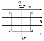 3、选择题 如图所示,一正方形线圈abcd在匀强磁场中绕垂直于磁感线的对称轴OO′匀速转动,从O向O′观察,线圈沿逆时针方向转动.已知匀强磁场的磁感应强度为B,线圈匝数为n,边长为l,电阻为R,转动的角速度为ω,则当线圈转至图示位置时( )