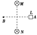4、选择题 两根通电直导线M、N都垂直纸面固定放置,通过它们的电流方向如图所示,线圈L的平面跟纸面平行,现将线圈从位置A沿M、N连线中垂线迅速平移到位置B,则在平移过程中,线圈中的感应电流