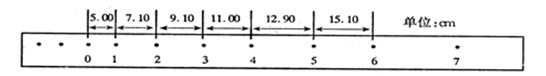 本题解析:据题意,由于每两个计数点之间省略4个点,则相邻计数点之间时间间隔为,故打4号点时纸带速度为: