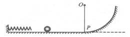 4、计算题 如图所示,光滑水平轨道与光滑圆弧轨道相切,轻弹簧的一端固定在轨道的左端,OP是可绕O点转动的轻杆,且摆到某处就能停在该处;另有一小钢球。现在利用这些器材测定弹簧被压缩时的弹性势能。