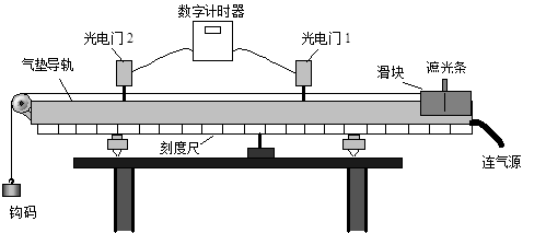 (1)由上图中刻度尺读出两个光电门中心之间的距离s=24 cm,由下图中游标卡尺测得遮光条的宽度d=________ cm。该实验小组在做实验时,将滑块从如图所示位置由静止释放,由数字计时器可以读出遮光条通过光电门1的时间Δt1,遮光条通过光电门2的时间Δt2,则滑块经过光电门1时的瞬时速度的表达式v1=________,滑块经过光电门2时的瞬时速度的表达式v2=________,则滑块的加速度的表达式a=__________________________。(以上表达式均用字母表示)
